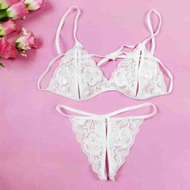 (情趣内衣)羞羞宝贝性感蕾丝透视内衣裤(白色)